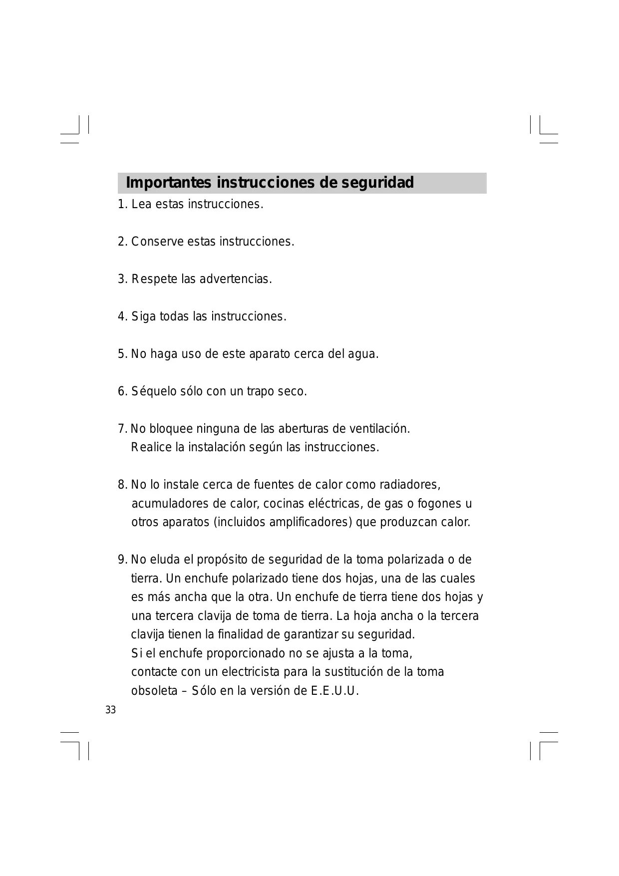 9. No eluda el propósito de seguridad de la toma polarizada o de
