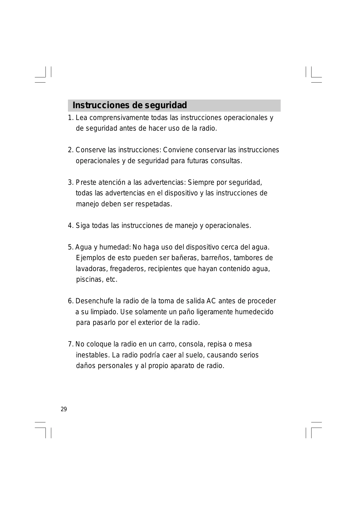 9. Fuentes de energía: La radio debería manejarse sólo con el tipo