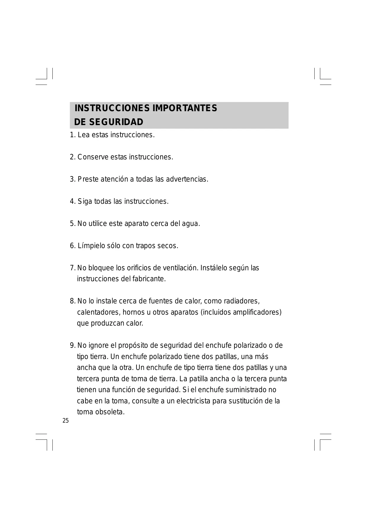 9. No ignore el propósito de seguridad del enchufe polarizado o de