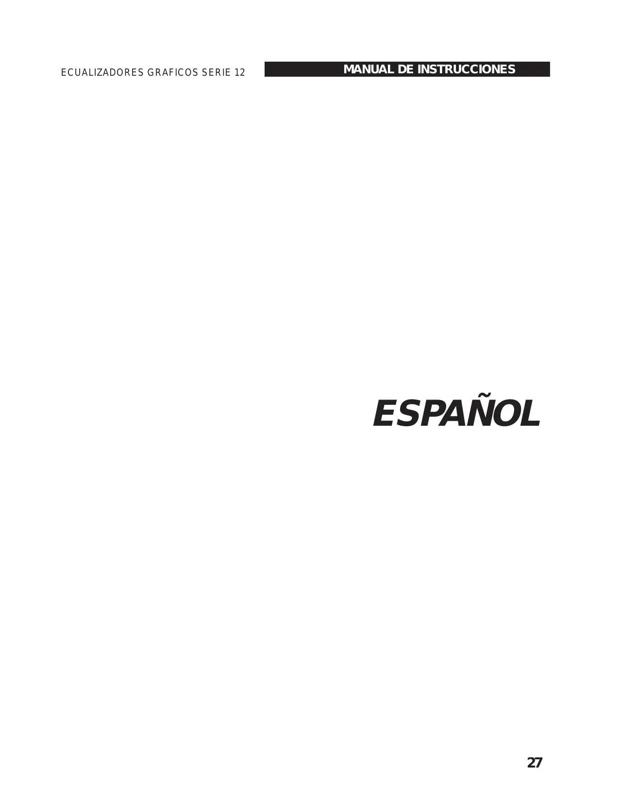 INTRODUCCION Felicidades por su compra de un ecualizador gráfico dbx. Todos los ecualizadores gráficos dbx son unidades multifuncionales de alto rendimiento diseñadas para poner en manos de los profesionales toda la flexibilidad y potencial que estos requieren. Le recomendamos que dedique un momento a leer por completo este manual de instrucciones. En él podrá encontrar información que le ayudará en todos los pasos desde la configuración de su sistema hasta las aplicaciones del EQ. Los ecualizadores de la Serie 12 incluyen las características siguientes: