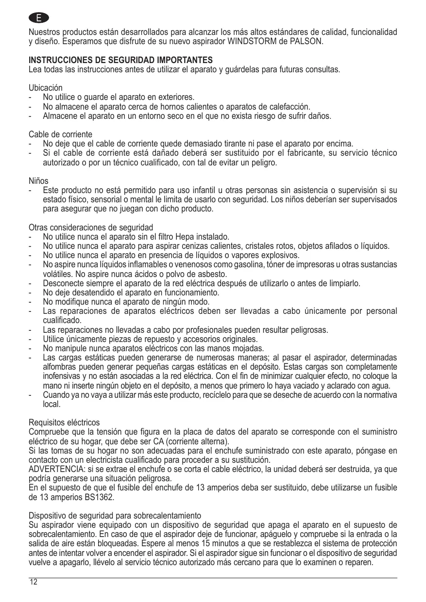 WINDSTORM - Aspiradora PALSON - Manual de uso y guía de instrucciones gratis