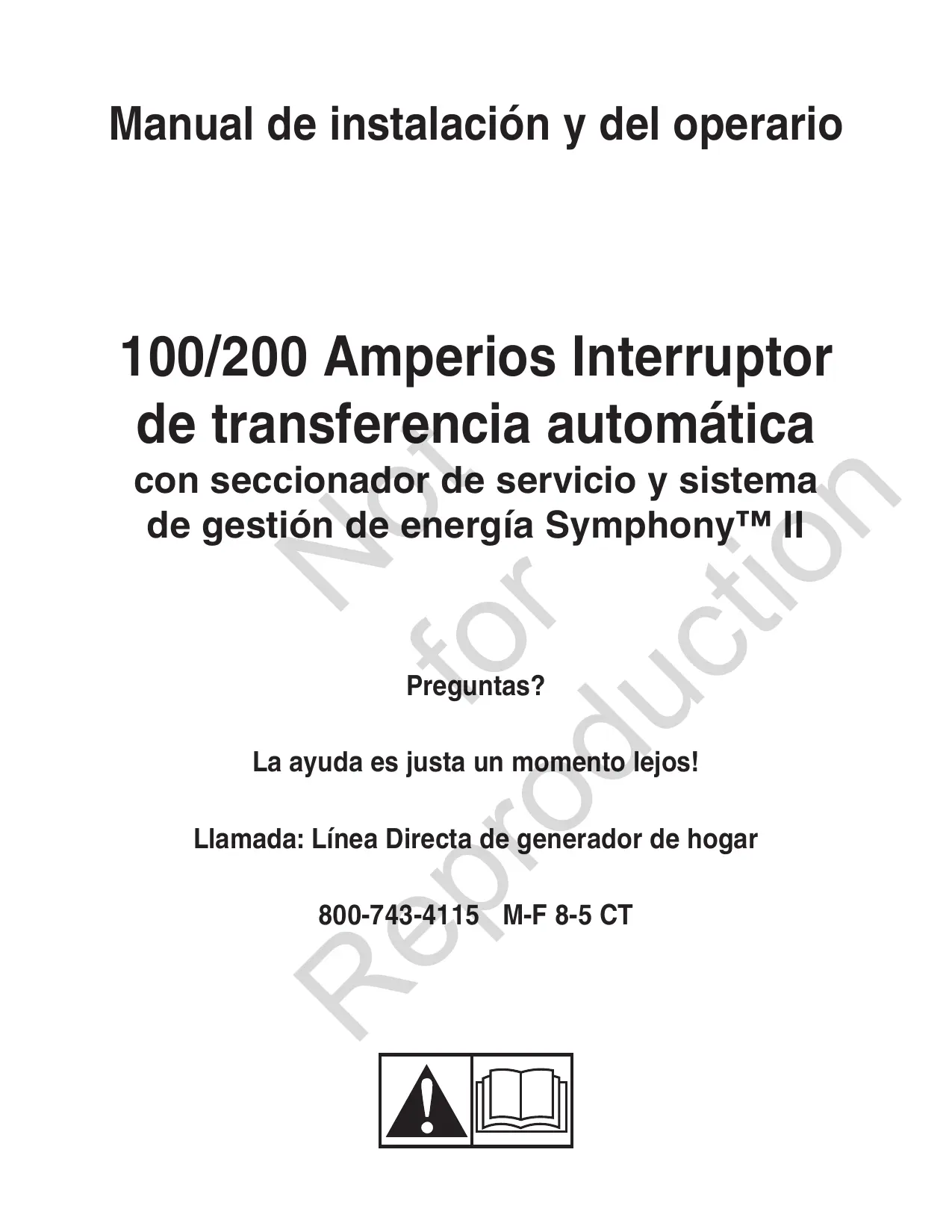 Manual de instalación y del operario 100/200 Amperios Interruptor de transferencia automática