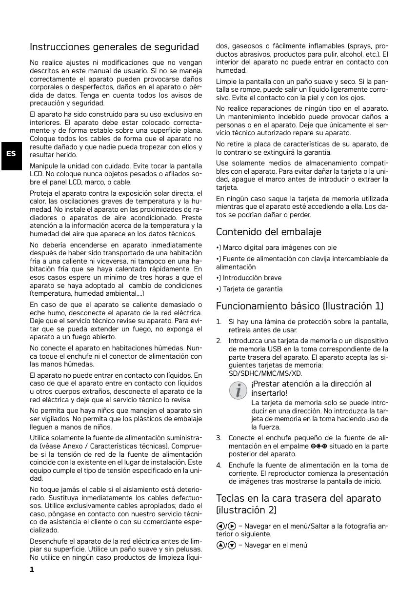 Use solamente medios de almacenamento compatibles con el aparato. Para evitar dañar la tarjeta o la Universidad, apague el marco antes de introducir o extraer la tarjeta.