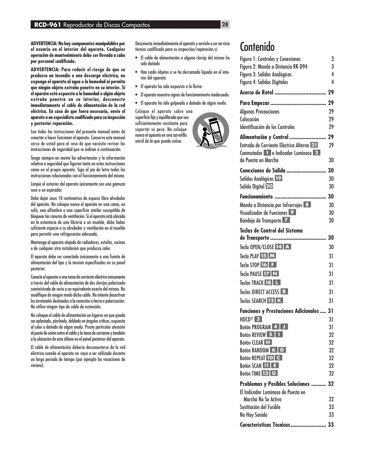 Acerca de Rotel ................................... 29 Para Empezar ...................................... Algunas Precauciones Colocación Identificación de los Controles