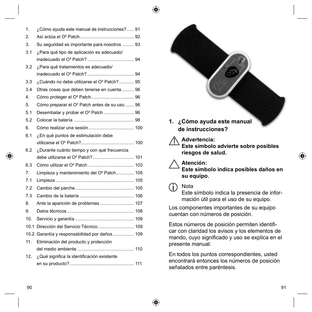 El presente manual de instrucciones forma parte del equipo. Consérvelo en buen estado hasta entregarlo junto con el O² Patch a un nuevo propietario o hasta eliminar el producto.