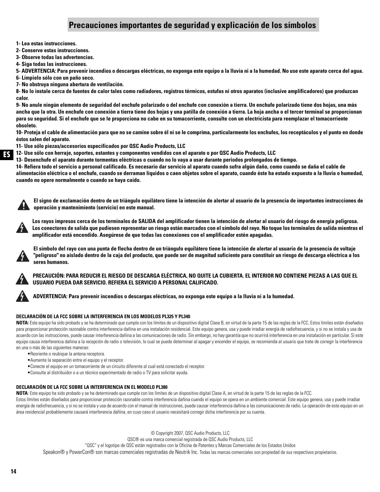 MANUAL DE USUARIO PL340 QSC AUDIO