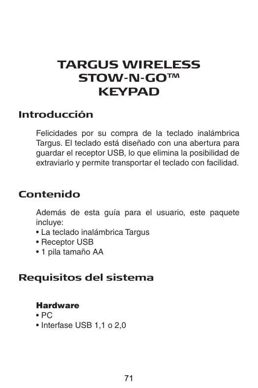 Descarga las instrucciones para tu Accesorio de computadora en formato PDF gratis! Encuentra tus instrucciones AKP07EU - TARGUS y toma tu dispositivo electrónico nuevamente en la mano. En esta página están publicados todos los documentos necesarios para el uso de su dispositivo. AKP07EU de la marca TARGUS.