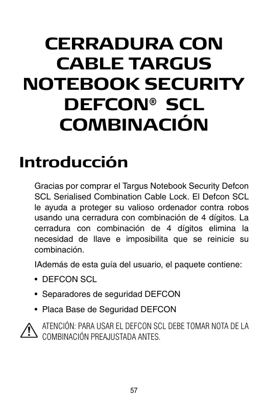 Encuentra gratis el manual del aparato NOTEBOOK SECURITY DEFCON SCL TARGUS en formato PDF.