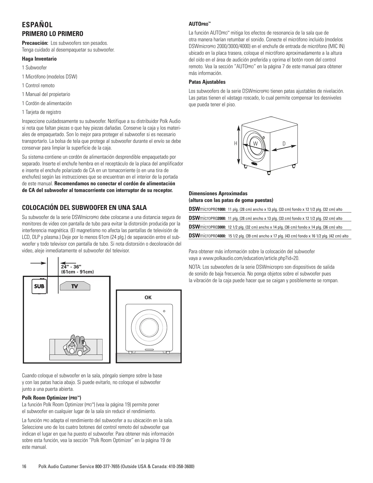 DSW MICROPRO 3000 - Subwoofer POLK AUDIO - Manual de uso y guía de instrucciones gratis