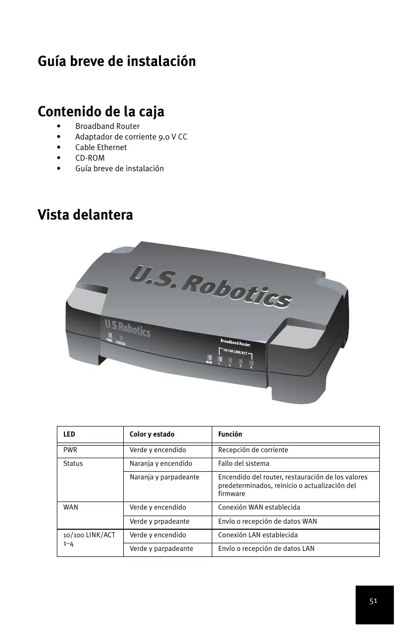 BROADBAND ROUTER - Enrutador de banda ancha US ROBOTICS - Manual de uso y guía de instrucciones gratis