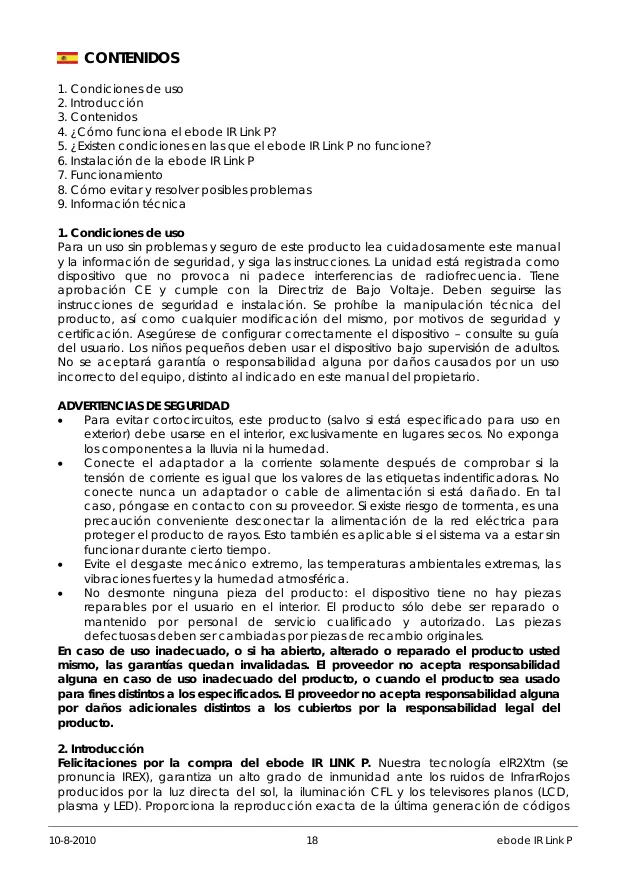En caso de uso inadequado, o si ha abierto, alterado o reparado el producto uspedismo, las garantias quandan invalidadas. El proveedor no accepts responsivenessal alghuna en caso de uso inadequado del producto, o cuando el producto sea usedo para fines distinctos a los specificados. El proveedor no accepts responsivenessal alghuna por daños adiconiales distinctos a los cubiertos por la responsabilidad legal del producto.