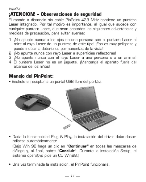 - El puntero Laser no es un juguete. Mantenga el aparato fuera del alcance de los niños!