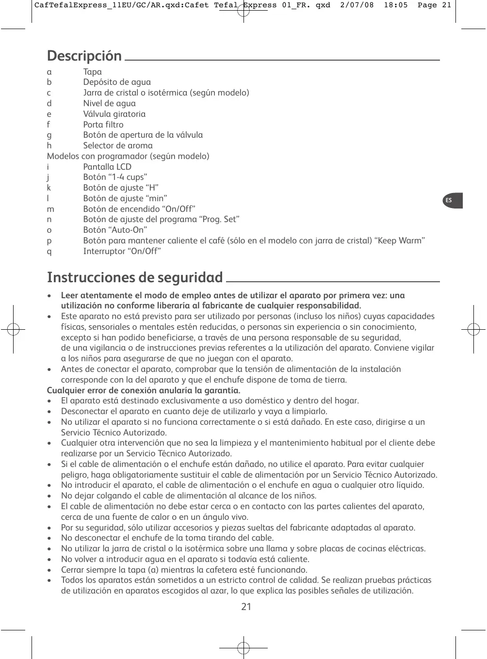 MANUAL DE USUARIO CM425D10 T-FAL