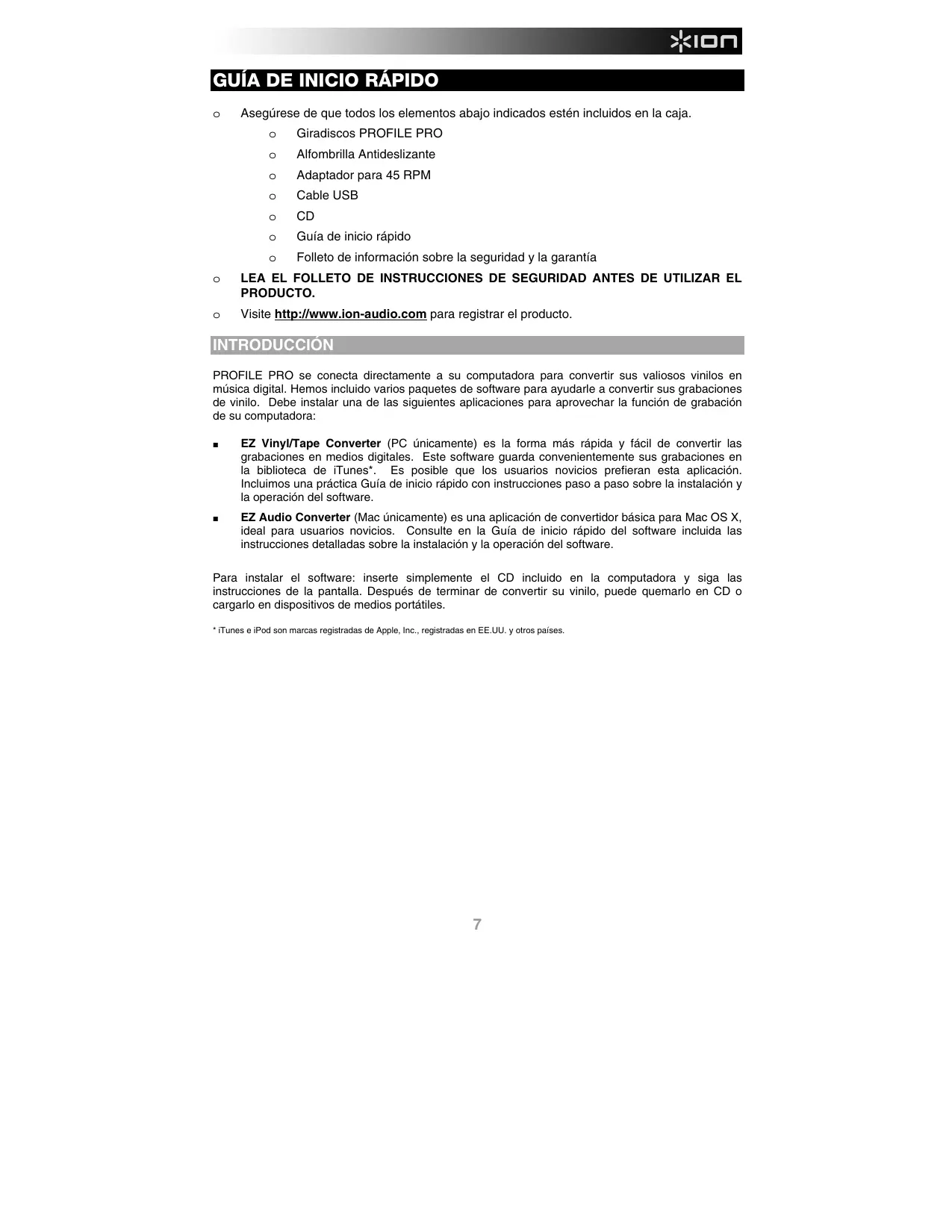 Visite http://www.ion-audio.com para registrar el producto.