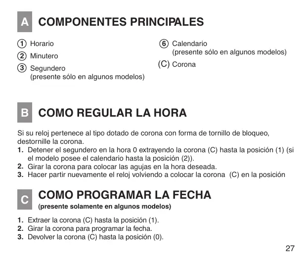 - Hacer partir-Newamente el reloj volviendo a colocar la corona (C) en la posicion