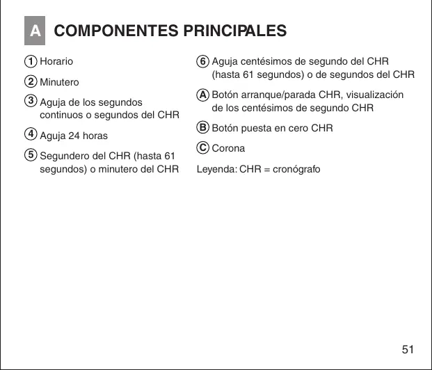 ⑤ Segundo del CHR (hasta 61 segundos) o minutero del CHR