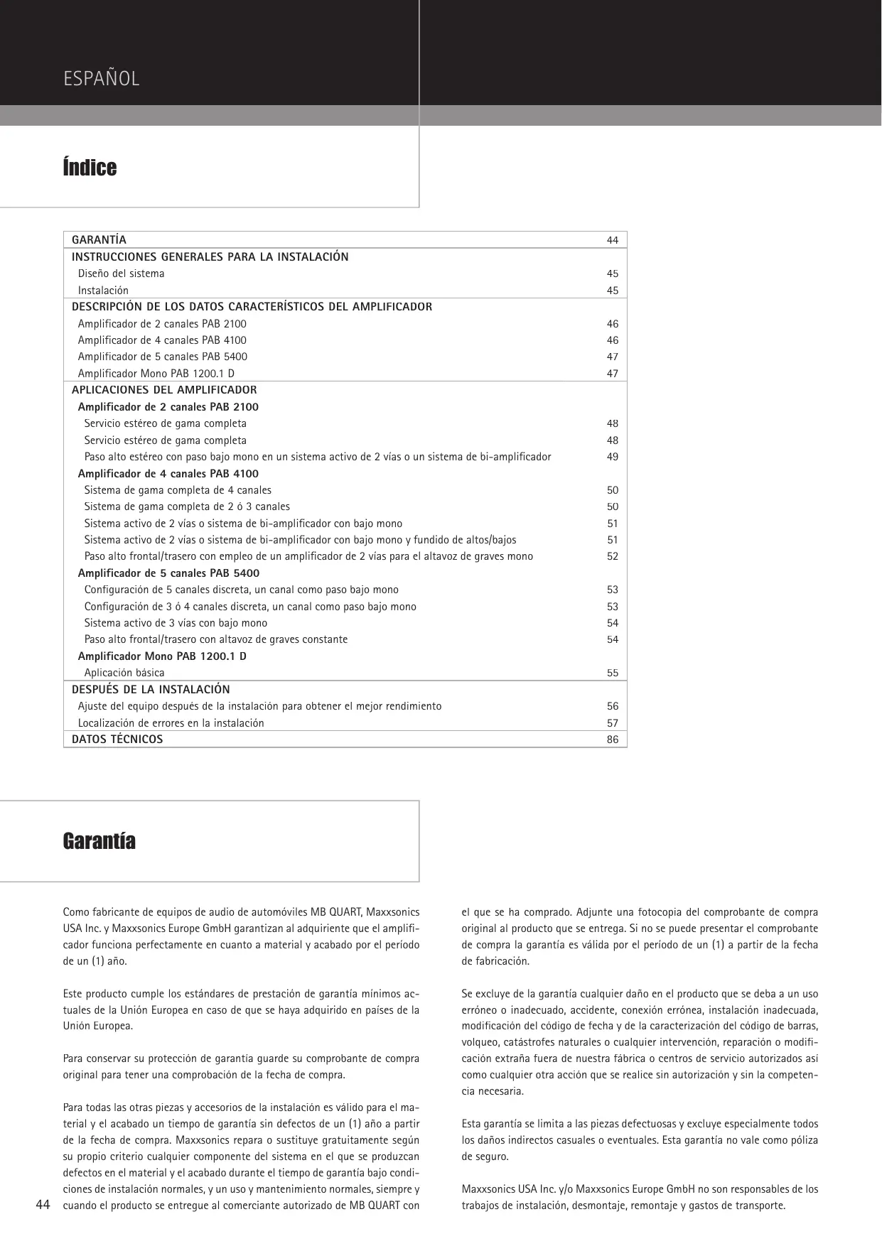 | Amplificador de 4 canales PAB 4100 | 46 |