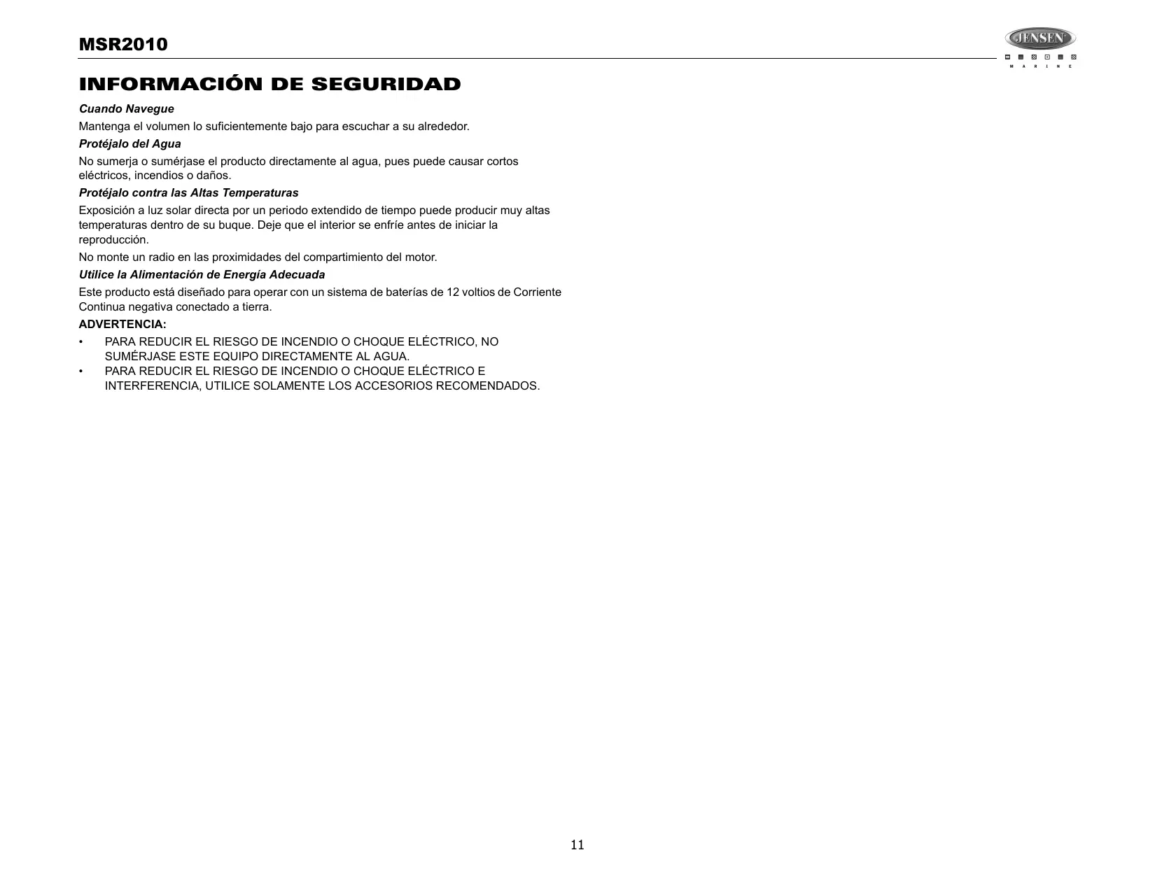 MSR2010 - Sistema de audio JENSEN VOYAGER - Manual de uso y guía de instrucciones gratis
