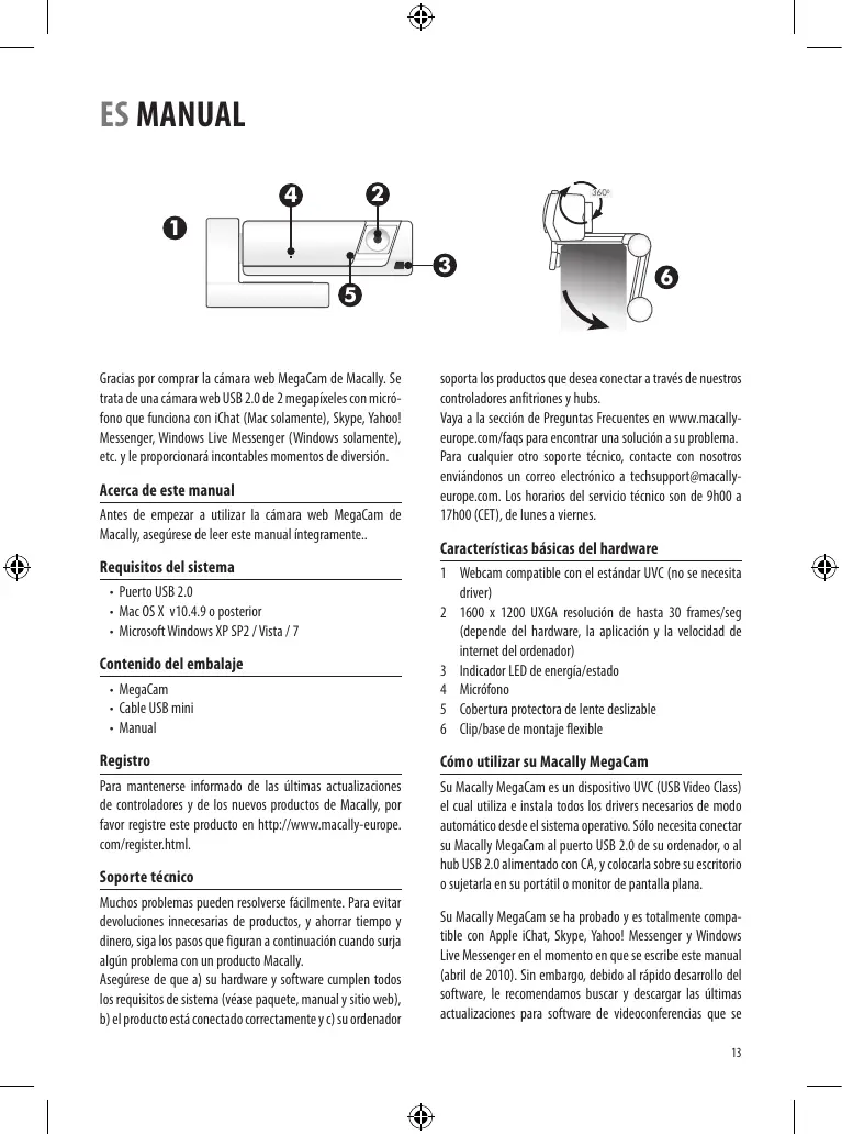 MEGACAM - Cámara MACALLY - Manual de uso y guía de instrucciones gratis