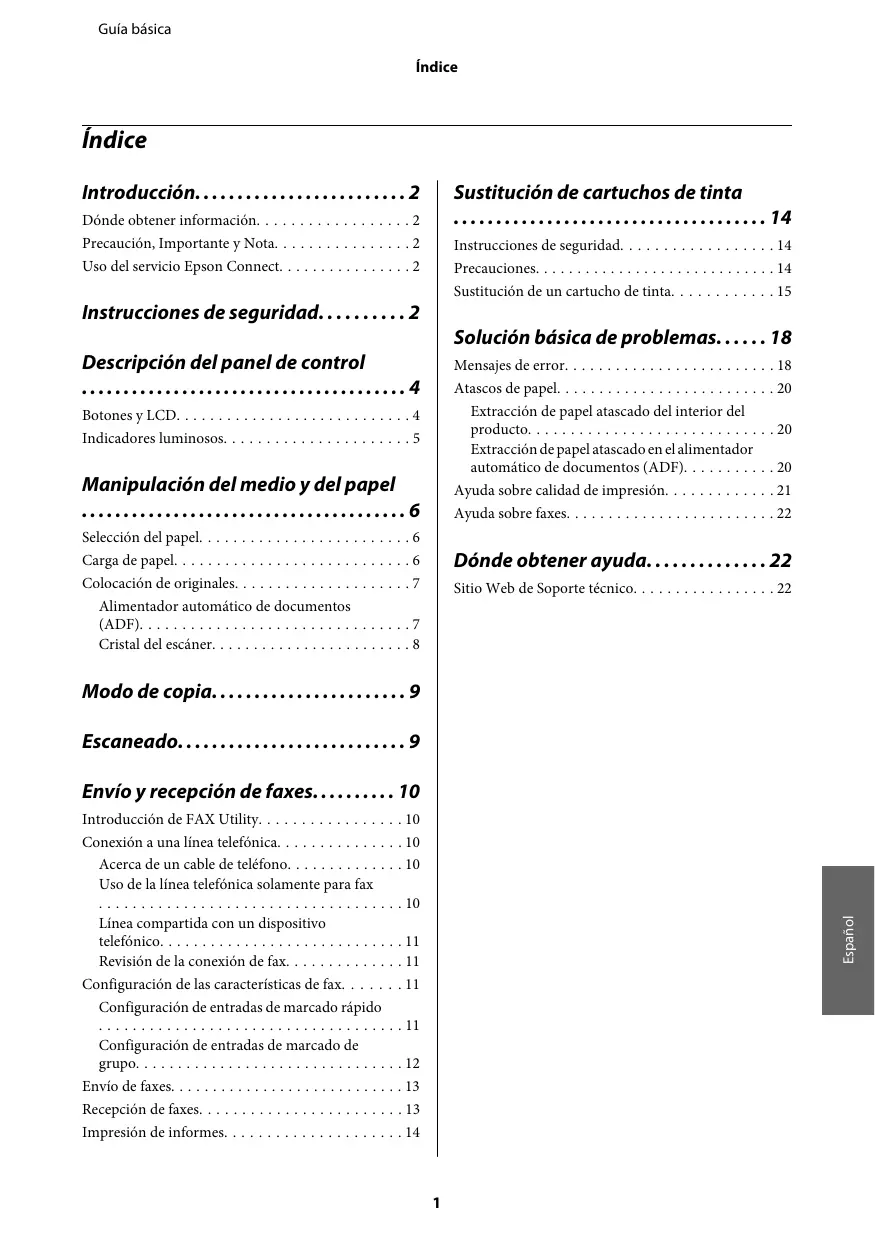 Guía básica Índice Índice Introducción. . . . . . . . . . . . . . . . . . . . . . . . . 2 Sustitución de cartuchos de tinta