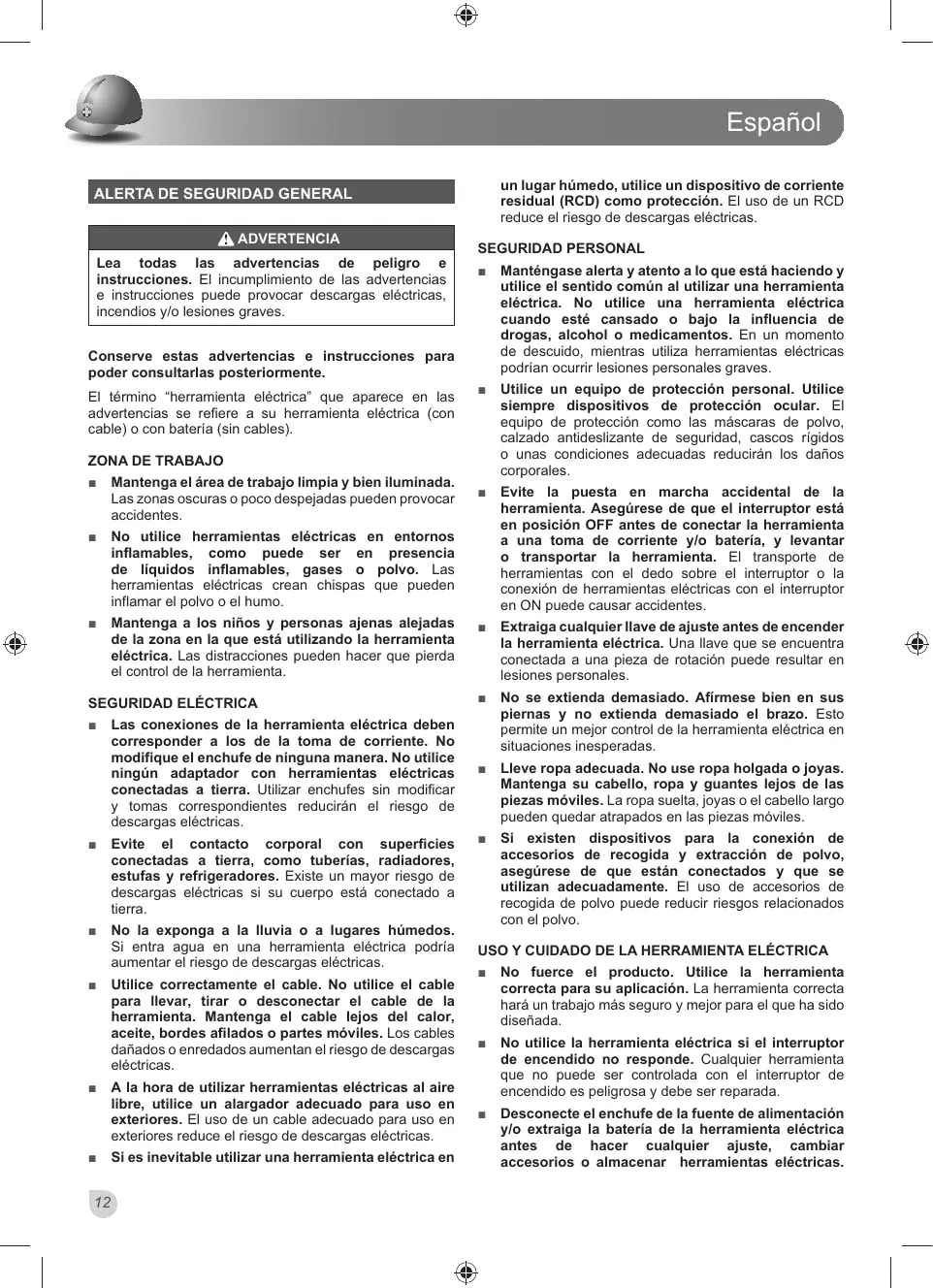 Para un funcionamiento seguro, lea y comprenda todas las instrucciones DQWHVGHXVDUHOSURGXFWR Utilice elementos de protección ocular y auditiva, y un casco cuando utilice esta PiTXLQD Utilice calzado de seguridad antideslizante cuando utilice este