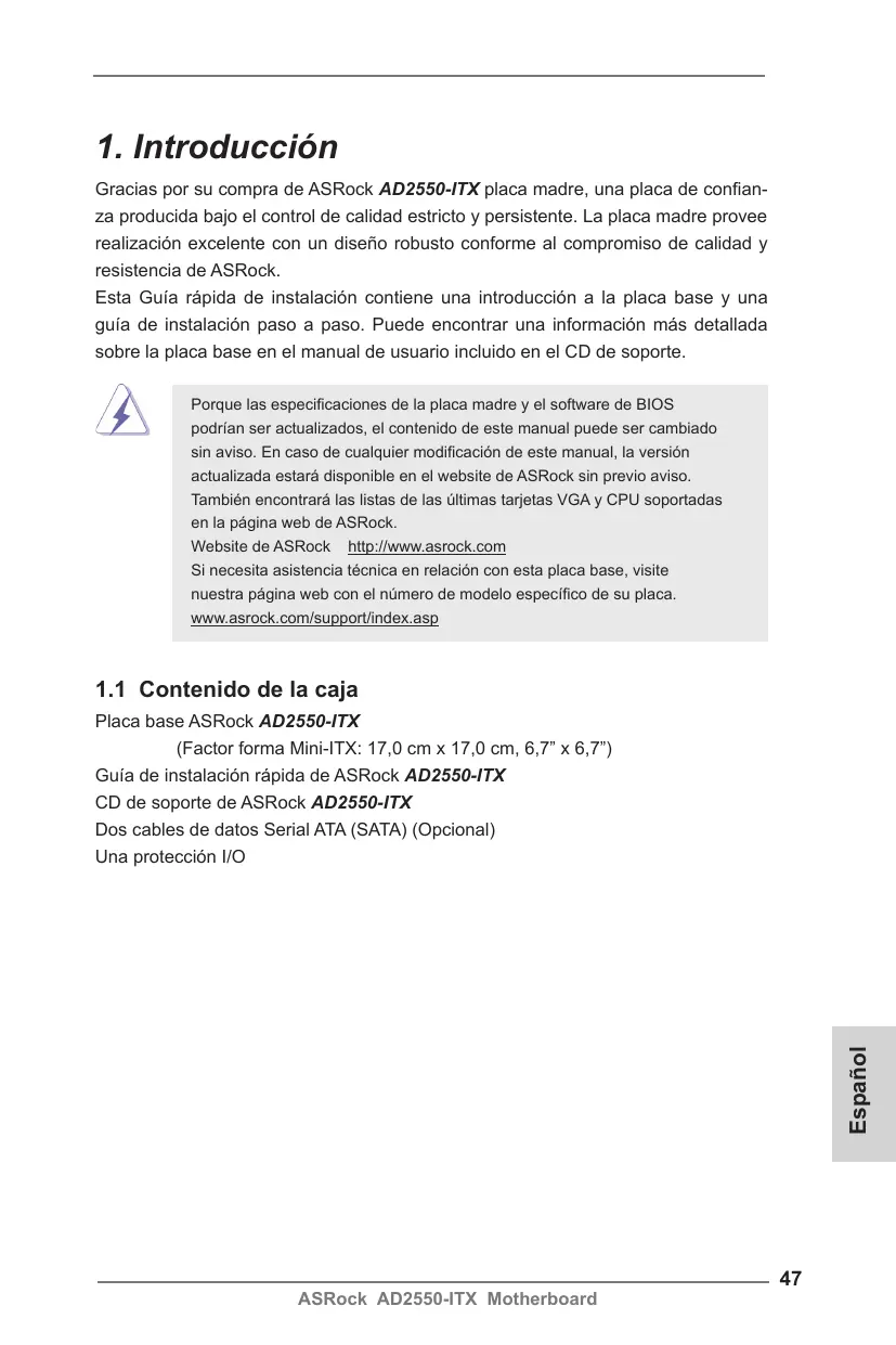 MANUAL DE USUARIO AD2550B-ITX ASROCK