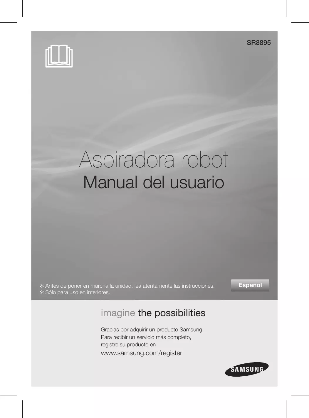 - Controleer of de VIRTUAL Aspiradora robot Manual del usuario ✻ Antes de poner en marcha la unidad, lea atentamente las instrucciones. ✻ Sólo para uso en interiores. imagine the possibilities Gracias por adquirir un producto Samsung. Para recibir un servicio más completo, registre su producto en www.samsung.com/register Español Información de seguridad