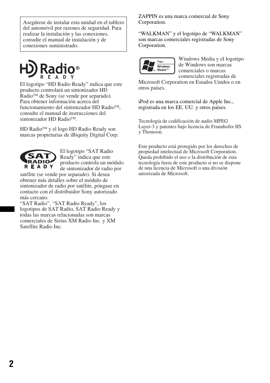 RE A D Y El logotipo “HD Radio Ready” indica que este producto controlarä un sintonizador HD Radio! de Sony (se vende por separado). Para obtener informacién acerca del funcionamiento del sintonizador HD Radioï", consulte el manual de instrucciones del sintonizador HD Radioï,