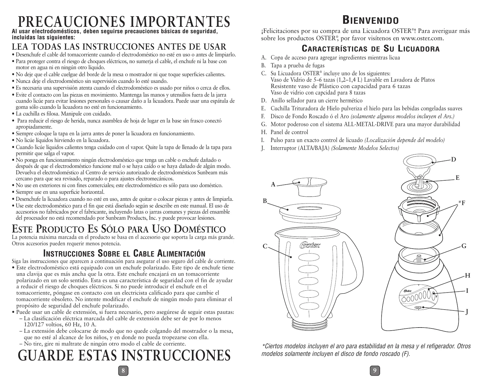 ¡Felicitaciones por su compra de una Licuadora OSTER®! Para averiguar más sobre los productos OSTER®, por favor visítenos en www.oster.com.