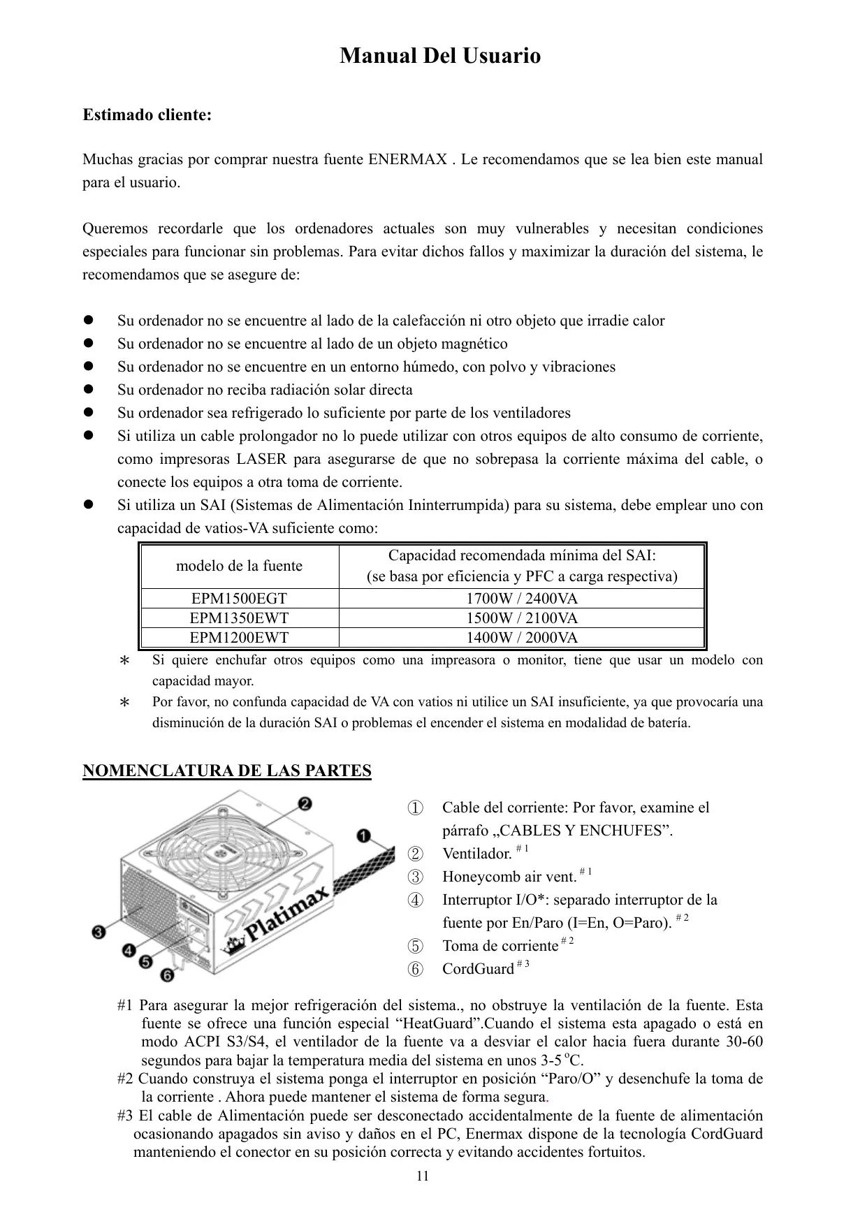 MANUAL DE USUARIO PLATIMAX EPM1350EWT 80PLUS PLATINUM ENERMAX