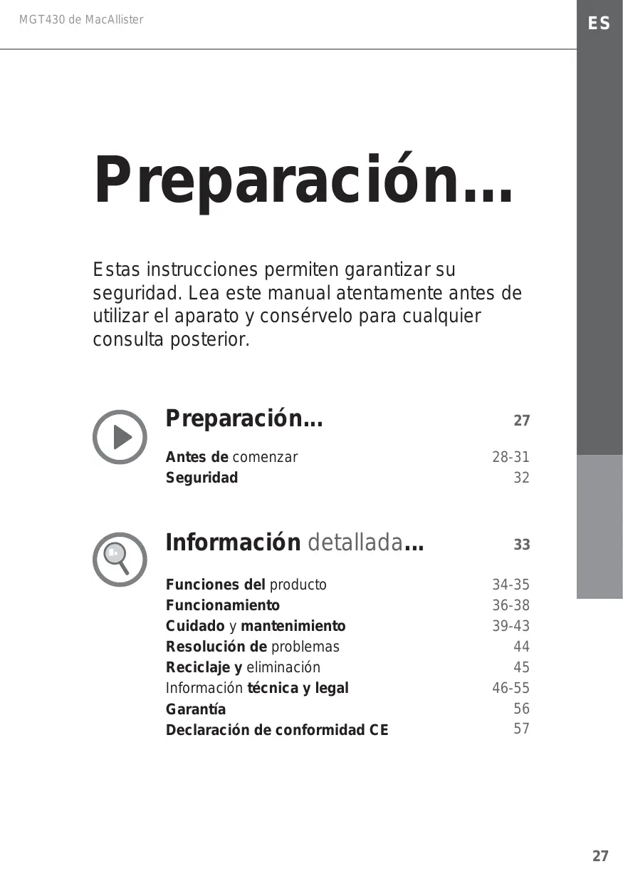 Encuentra gratis el manual del aparato MGT600 MAC ALLISTER en formato PDF.