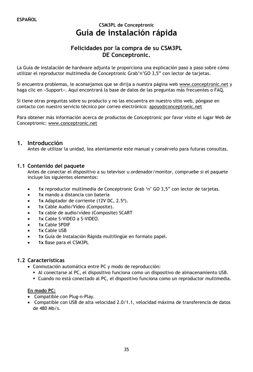 Felicidades por la compra de su CSM3PL DE Conceptronic.