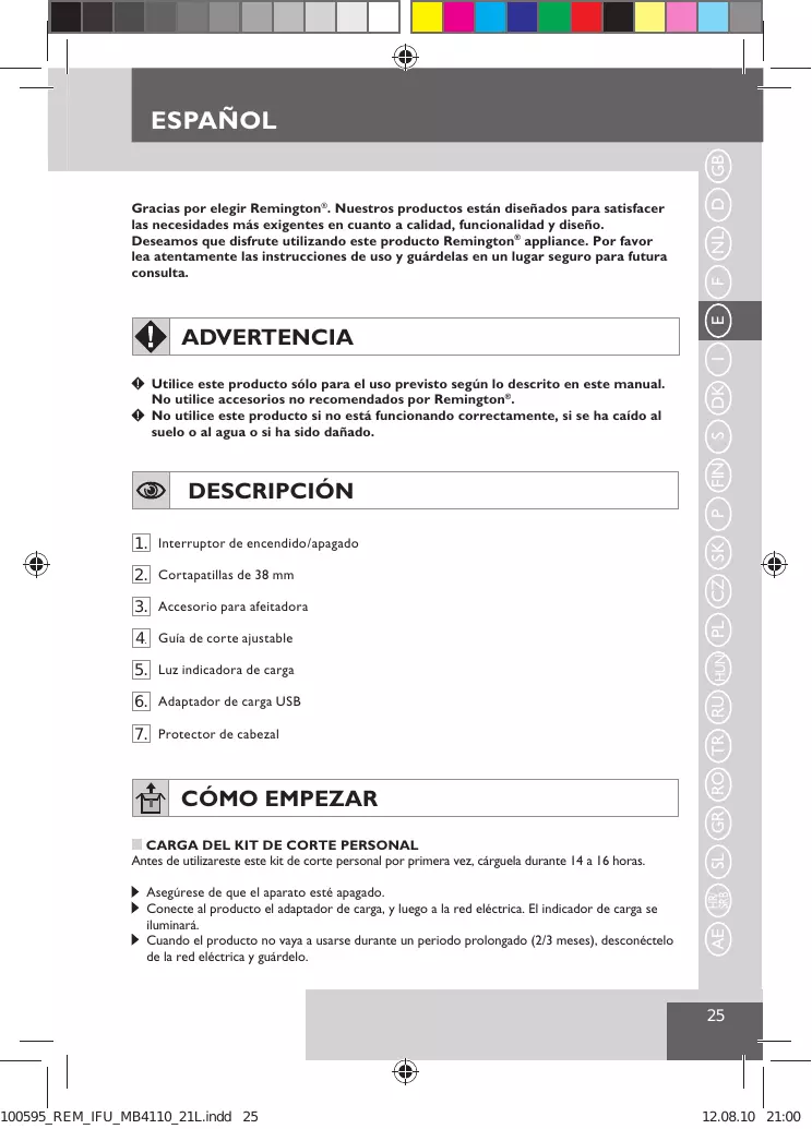 Encuentra gratis el manual del aparato MB4110 REMINGTON en formato PDF.