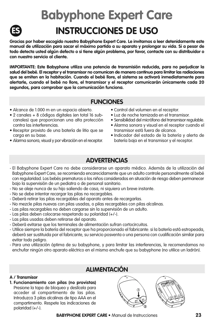 BABYPHONE EXPERT CARE • Manual de Instrucciones
