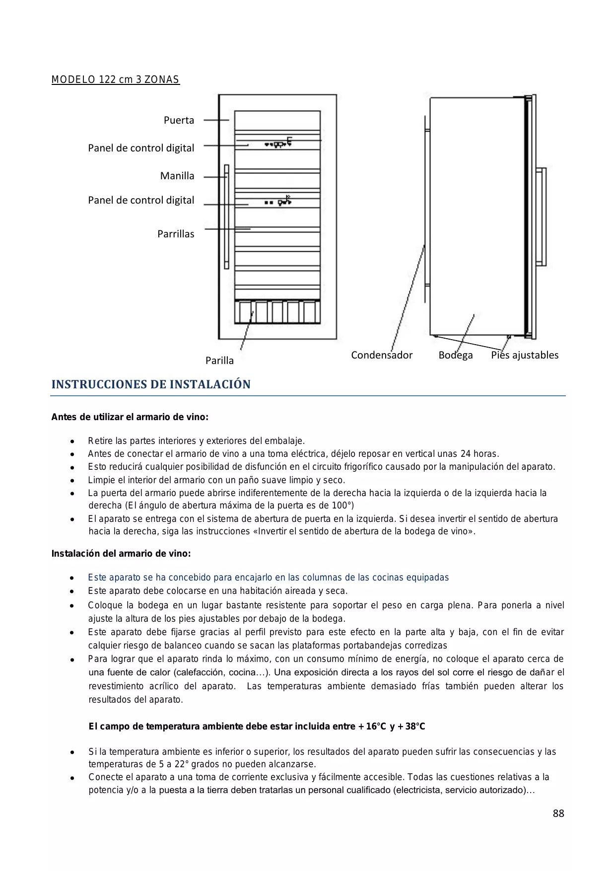Este aparato está diseñado únicamente para el almacenimiento de vinos.