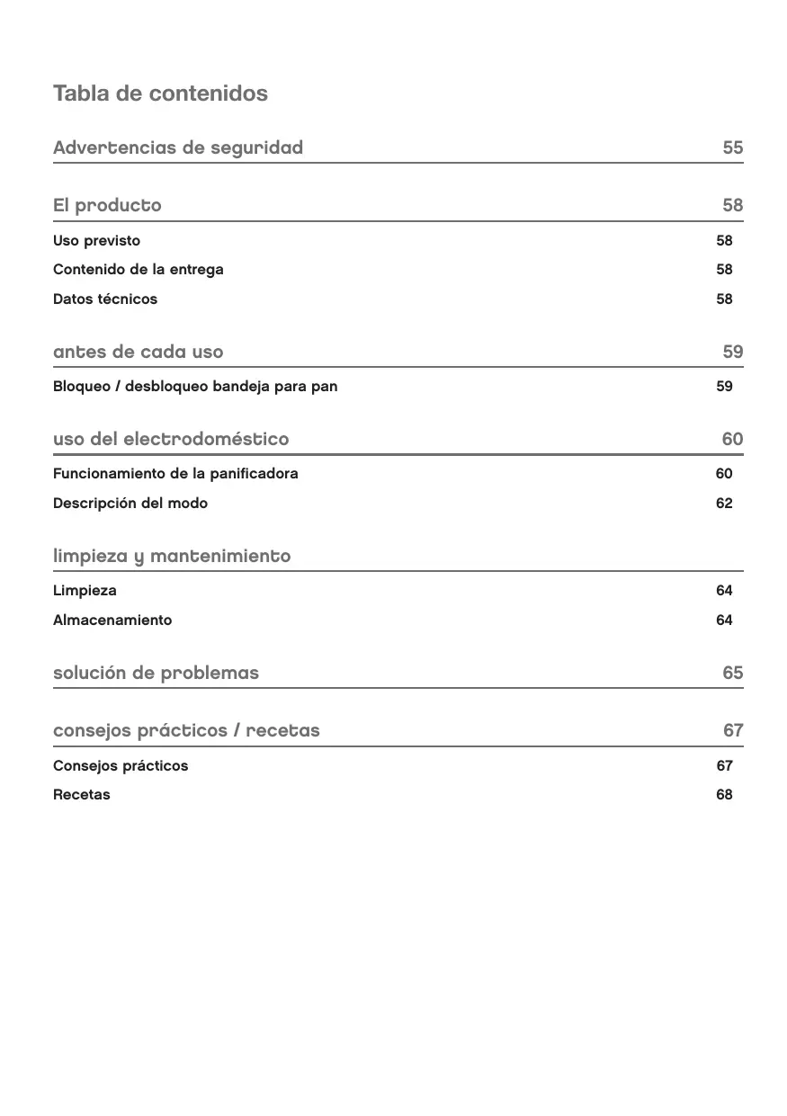 Bloqueo /desbloqueo bandeja para pan 59