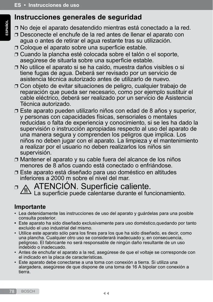 TDS4040 - Hierro BOSCH - Manual de uso y guía de instrucciones gratis
