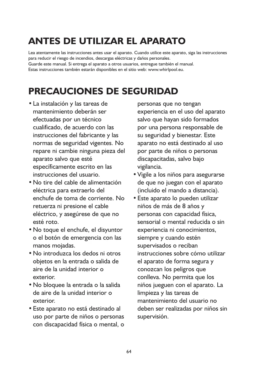 Guarde este manual. Si entrega el aparato a otros usuarios, entregue también el manual. Estas instrucciones también estarán disponibles en el sitio web: www.whirlpool.eu.