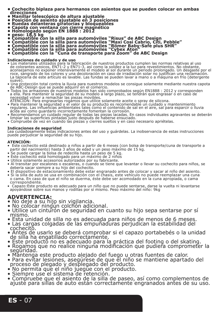 - Compatible con la “Cuna de transporte para Zoom” de ABC Design Indicaciones de cuidado y de uso