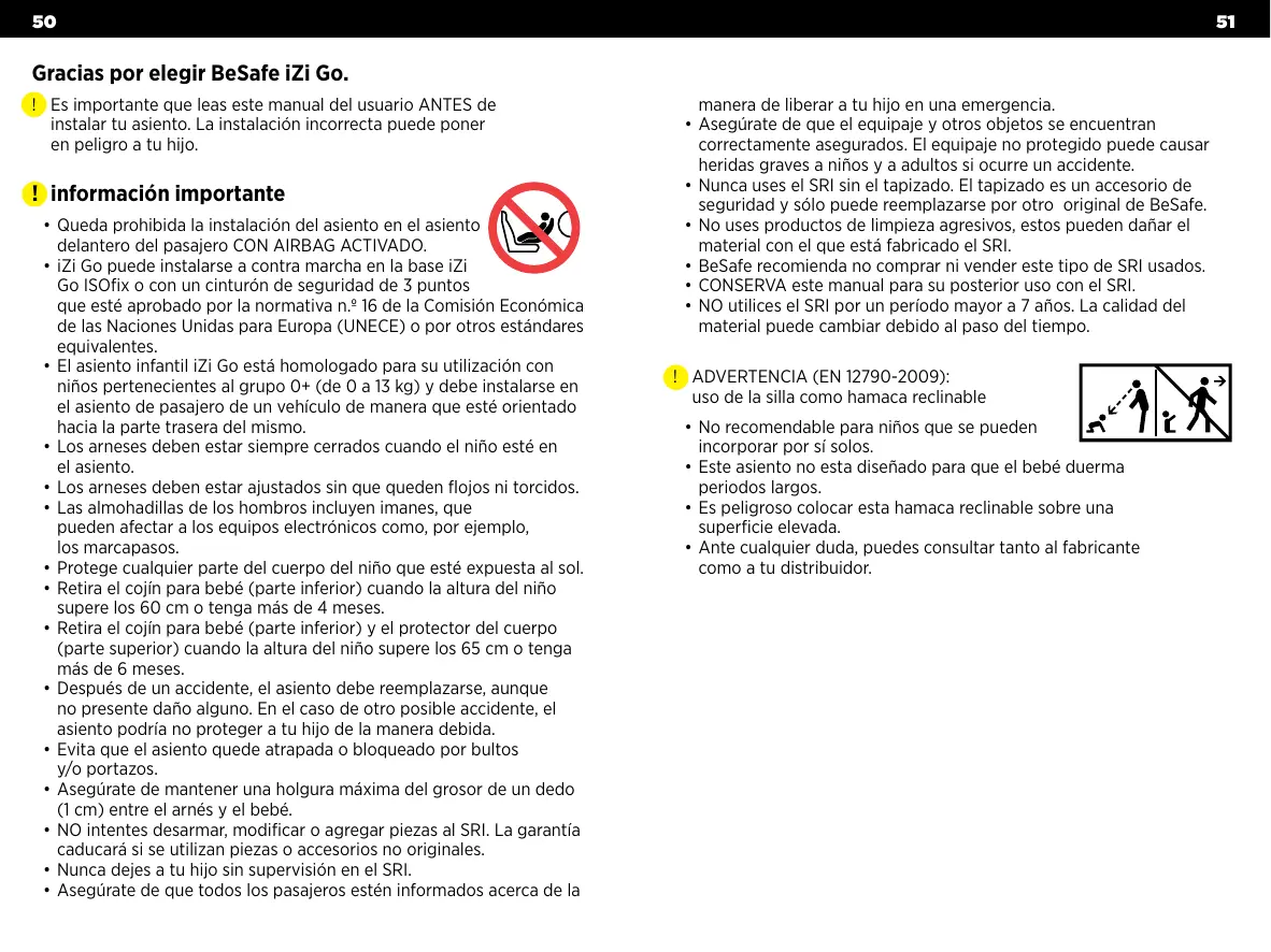 Descarga las instrucciones para tu Asiento de coche en formato PDF gratis! Encuentra tus instrucciones IZI GO - BESAFE y toma tu dispositivo electrónico nuevamente en la mano. En esta página están publicados todos los documentos necesarios para el uso de su dispositivo. IZI GO de la marca BESAFE.