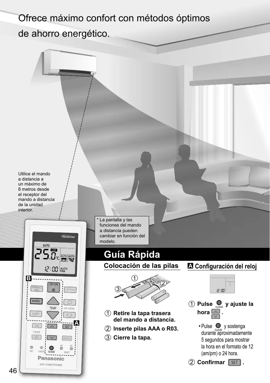 8 metros desde el receptor del mando a distancia de la unidad interior. * La pantalla y las funciones del mando a distancia pueden cambiar en función del modelo.