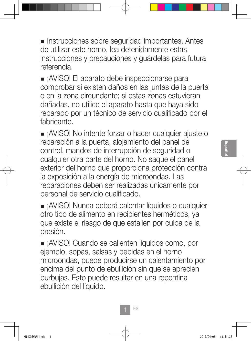 Instrucciones sobre seguridad importantes. Antes de utilizar este horno, lea detenidamente estas instrucciones y precauciones y guárdelas para futura referencia.