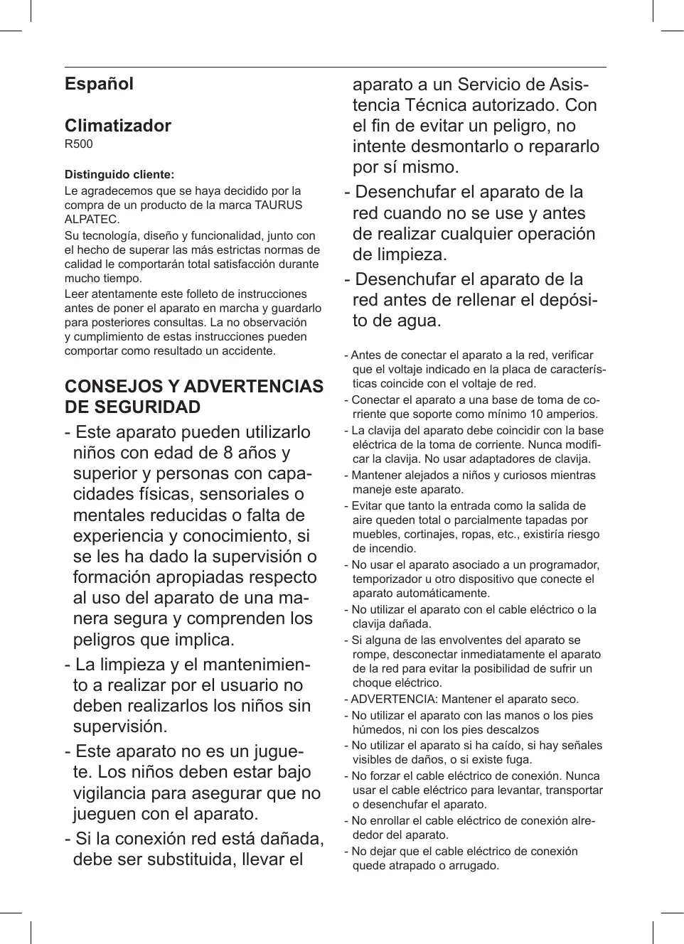 Le agradecemos que se haya decidido por la compra de un producto de la marca TAURUS ALPATEC. Su tecnología, diseño y funcionalidad, junto con el hecho de superar las más estrictas normas de calidad le comportarán total satisfacción durante mucho tiempo. Leer atentamente este folleto de instrucciones antes de poner el aparato en marcha y guardarlo para posteriores consultas. La no observación y cumplimiento de estas instrucciones pueden comportar como resultado un accidente.
