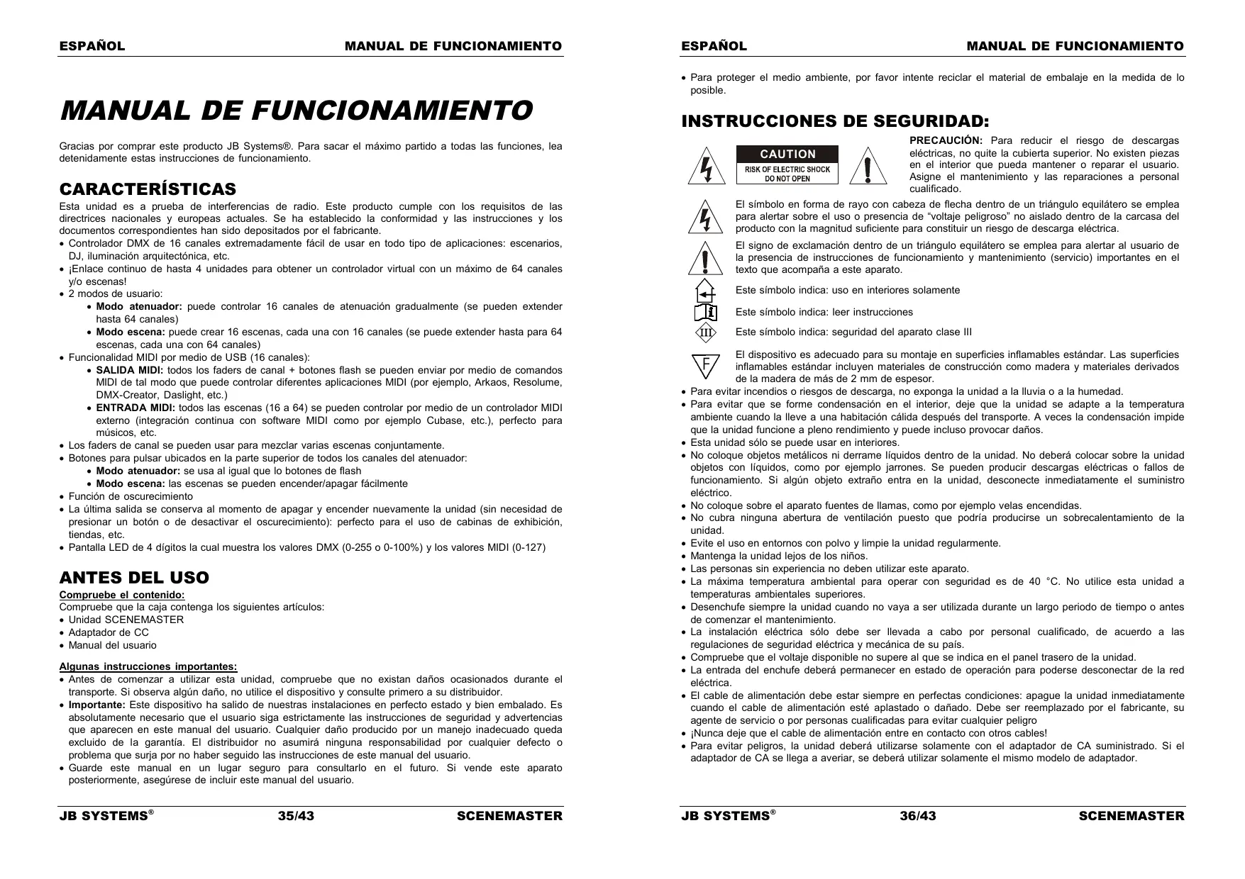 Gracias por comprar este produit JB Systems®. Para sacar el máximo partir a todas las/DDes, lea detenidamente estas instrucciones de functiOnamento.