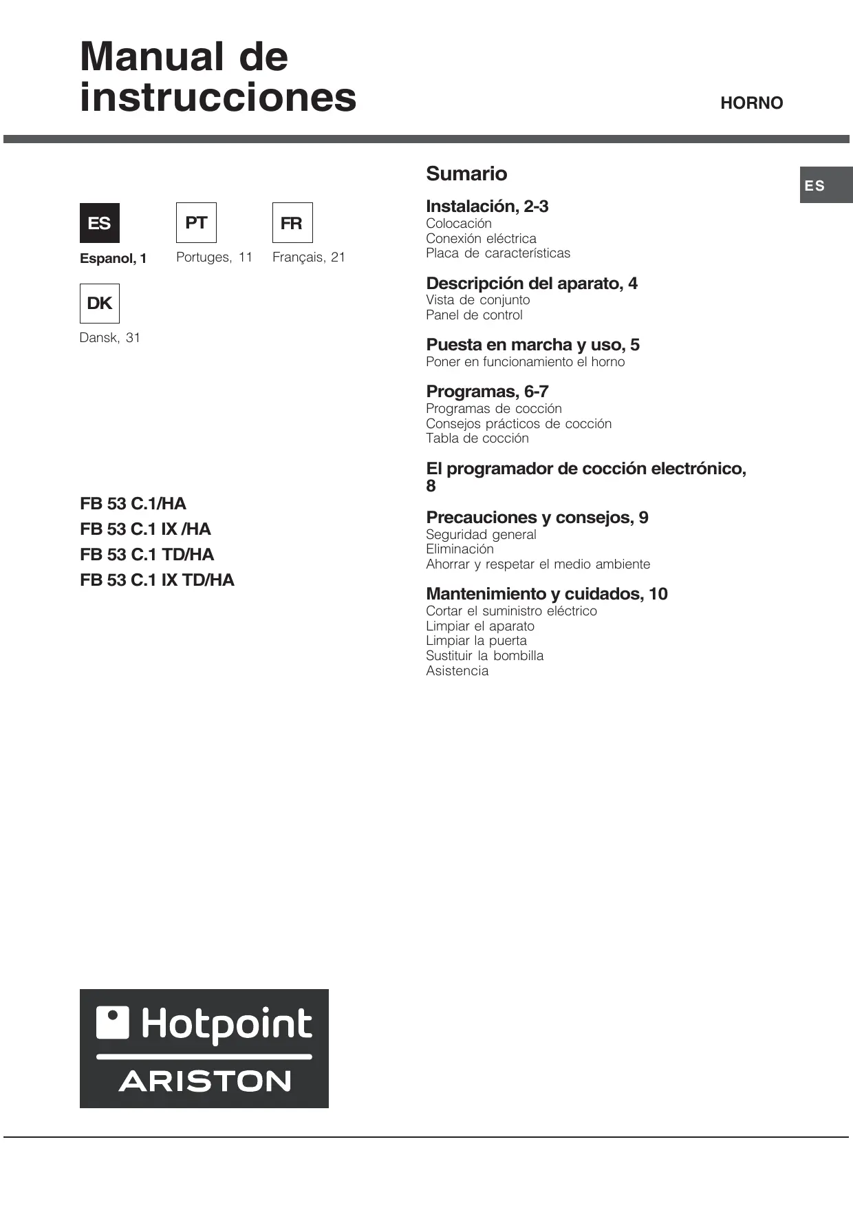 Manual de instrucciones HORNO Sumario Espanol, 1