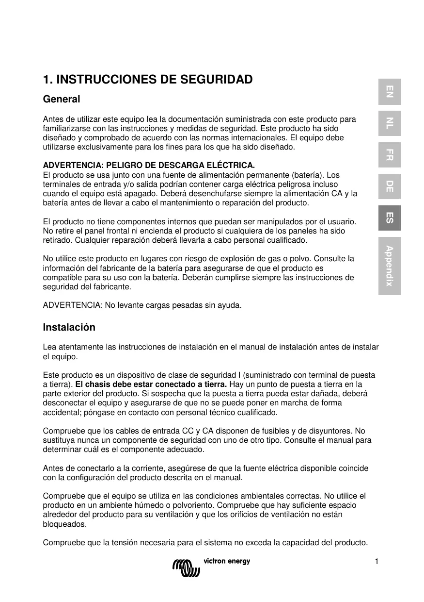 MANUAL DE USUARIO 24-1600 230V VICTRON ENERGY