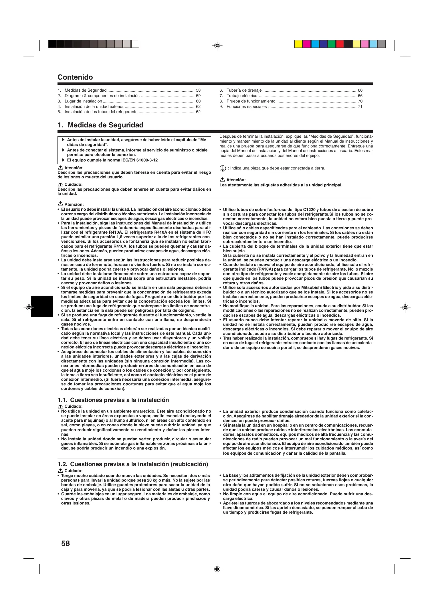 1. Medidas de Seguridad s Antes de instalar la unidad, asegúrese de haber leído el capítulo de “Medidas de seguridad”. s Antes de conectar el sistema, informe al servicio de suministro o pídale permiso para efectuar la conexión. s El equipo cumple la norma IEC/EN 61000-3-12
