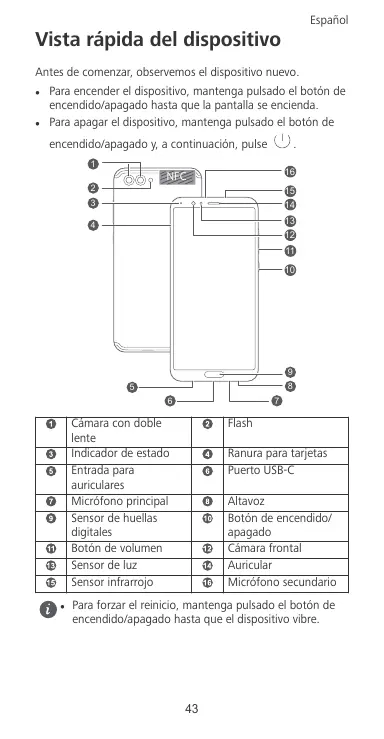 Para forzar el reinicio, mantenga pulsado el botón de encendido/apagado hasta que el dispositivo vibre.
