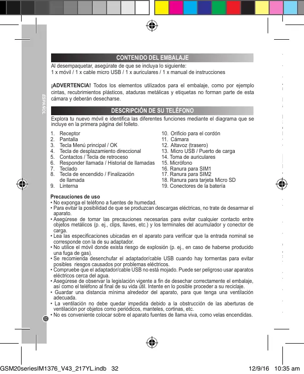 1 x móvil / 1 x cable micro USB / 1 x auriculares / 1 x manual de instrucciones