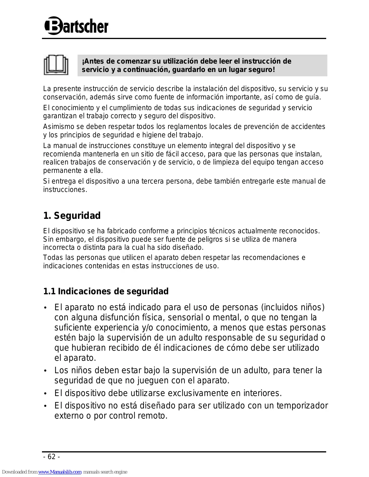 Encuentra gratis el manual del aparato 700965 BARTSCHER en formato PDF.
